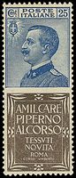 1922 - L. 1.20 azzurro e rosso, non emesso (8) SPL e centratissimo (1.950,00)