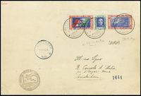 Lotto 1711POSTA AEREA 1933 - TRIPOLITANIA - Balbo (28/29) SPL + val. complementari su busta da Tripoli (9/6/33) a Reykjavik, via Roma - 34 aerogrammi trasportati - Cert. Colla + sigla G. Bolaffi (Longhi 2866)4 Asta conclusa!!!