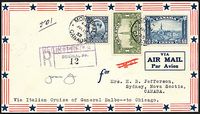 Lotto 1724POSTA AEREA 1933 - CANADA - Tappa Shediac - Chicago - Busta affrancata per complessivi $ 1,45 - Cert. Toselli 100% (Longhi 2937)4 Asta conclusa!!!