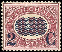 Base d'asta: EUR 500,00 Dettaglio Lotto Fai un'offertaLotto 626ITALIA REGNO 1878 - 2 c. su 10,00 lacca (36) SPL - Cert. Caffaz (900,00)11 Tempo rimanente: