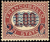 Base d'asta: EUR 1.500,00 Dettaglio Lotto Fai un'offertaLotto 623ITALIA REGNO 1878 - 2 c. su 0,30 lacca scuro (32) SPL, di ottima centratura e con leggera TL - Sigla Sorani (1.300,00)1» Tempo rimanente: