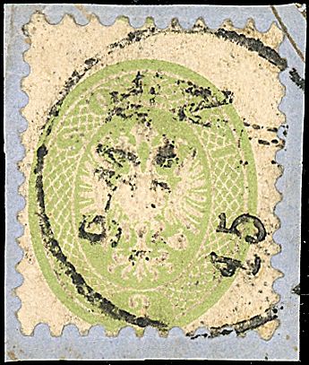 1864 - 3 s. verde (42) SPL su frammento usato in Austria a Vienna