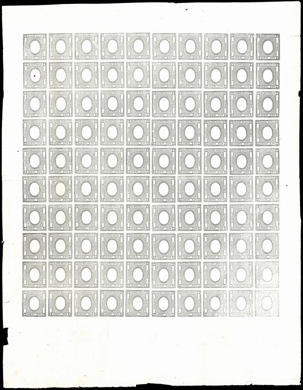 1861 - 1 c. grigio nero, senza cifra (19h) Splendido ed incredibile foglio di 100 esemplari con i margini non tosati, proveniente dalla stamperia Matraire - Rarissimo! - Cert. Bottacchi