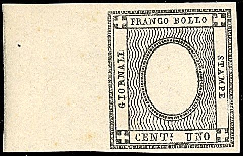 1861 - 1 c. grigio, senza cifra (19h) SPL e con b.f. a sinistra - Cert. Manzoni (2.000,00)