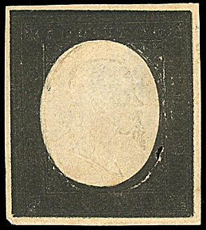 1854 - III emissione - 20 c. nero intenso su carta sottile bianca non gommata - Splendida - Cert. Cardillo