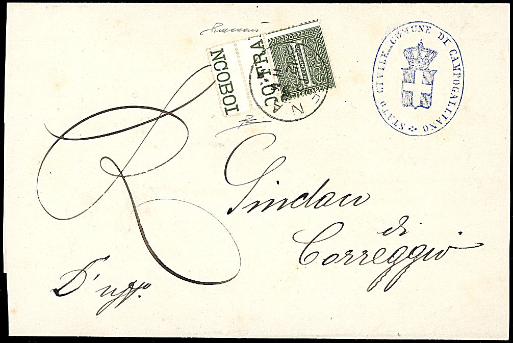 1863 - 1 c. verde oliva (T14) SPL con b.f. e interspazio di gruppo su lettera da Modena (15/12/63) a Correggio - Cert. RD + sigla Vaccari