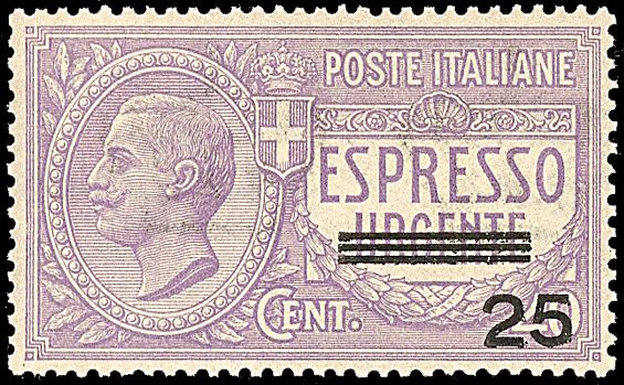 1917 - 25 c. su 40 c. violetto (3) SPL e ben centrato (525,00)