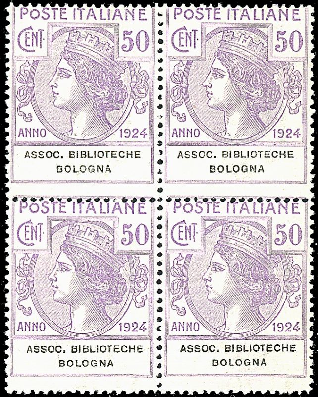 1924 - ASSOC. BIBLIOTECHE BOLOGNA (1/4) Serie cpl. 4 val. in quartine SPL (2.500,00)
