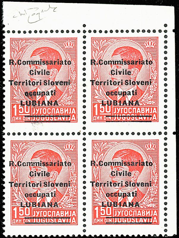 1941 - 1,50 d. rosso (34) in quartina SPL e con a.f. - Cert. Caffaz + cert. Ray (4.000,00+)