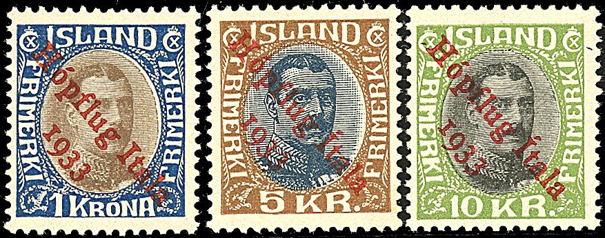 1933 - Balbo (12/14) Serie cpl. 3 val. SPL, ben centrati e con invisibile traccia di linguella - Cert. Sorani + cert. Toselli (2.000,00)