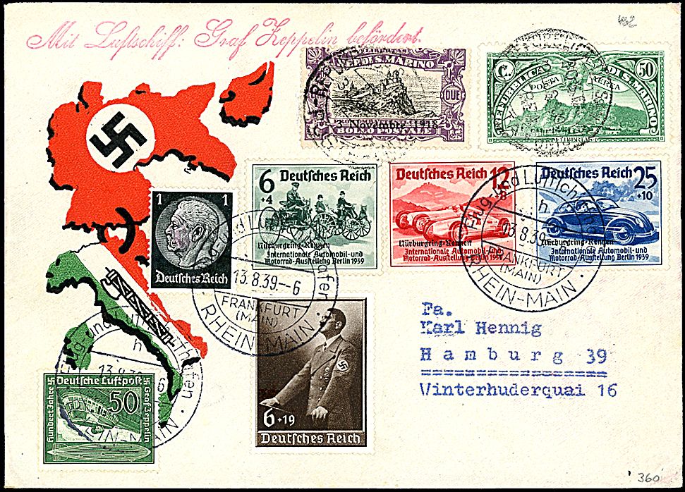 1939 - Viaggio a Eger - Busta da San Marino a Eger - Bollo di arrivo (Sieger 462)