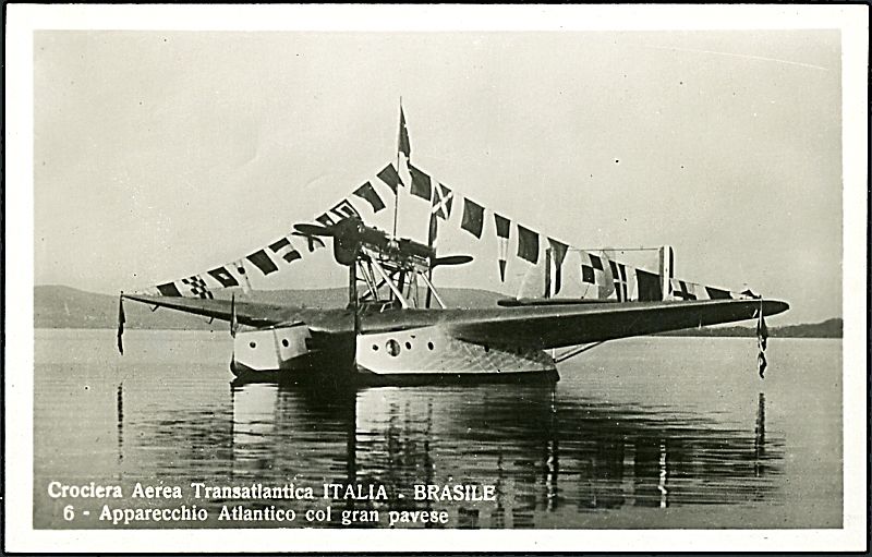 1930 - Crociera Atlantica - Cartolina Apparecchio Atlantico col gran pavese (Longhi 2282)