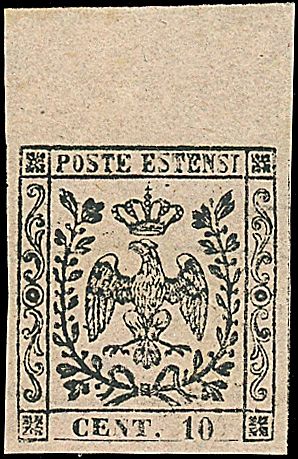 1852 - 10 c. rosa chiaro (2) SPL, con gomma integra e b.f. in alto - Sigla Vaccari (2.800,00)