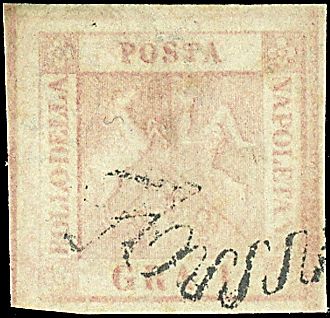 1858 - 1 gr. rosa chiaro (3) SPL con annullo a svolazzo tipo 28 (p. 10) - Sigla Manzoni (665,00)