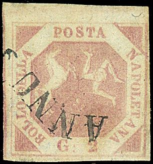 1858 - 2 gr. rosa brunastro (7) SPL con annullo a svolazzo tipo 4 (p. 5) - Sigla Manzoni (90,00)