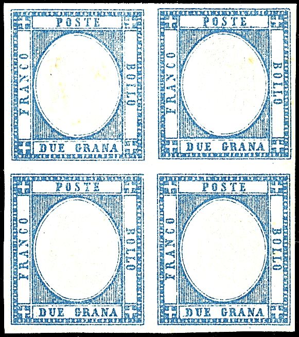 1861 - 2 gr. azzurro (20b) in quartina SPL - Cert. Manzoni (2.200,00)