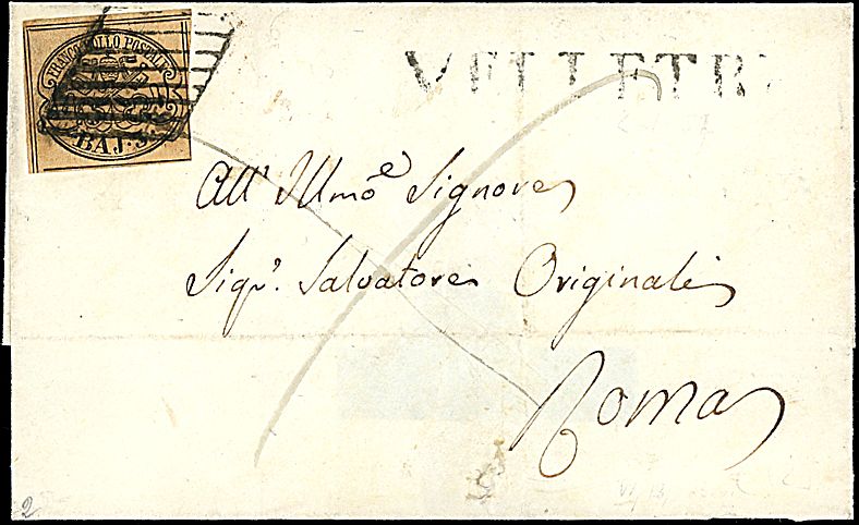 1852 - 3 b. bistro arancio (4) SPL su lettera da Velletri a Roma