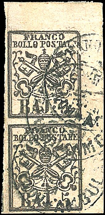 1852 - 5 b. rosa chiaro (6) in coppia SPL con a.f.