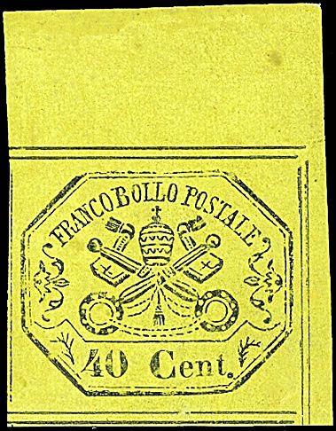 1867 - 40 c. giallo, senza punto dopo la cifra (19a) SPL e con a.f. (900,00)