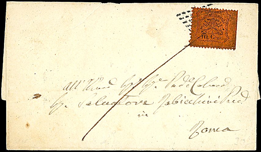 1868 - 10 c. arancio vermiglio (26) su lettera da Mazzano, Comarca di Roma, a Roma - Interessante e non comune