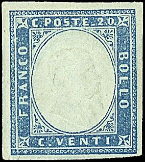 1861 - 20 c. celeste grigiastro (15Db) SPL e con leggera TL - Cert. RD + sigla AD (300,00)