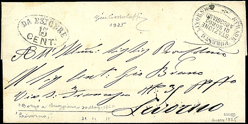 1860 - STRADA FERRATA LIVORNESE - Lettera da Buggiano (30/5/60) a Livorno - Non comune - Sigla G. Bolaffi