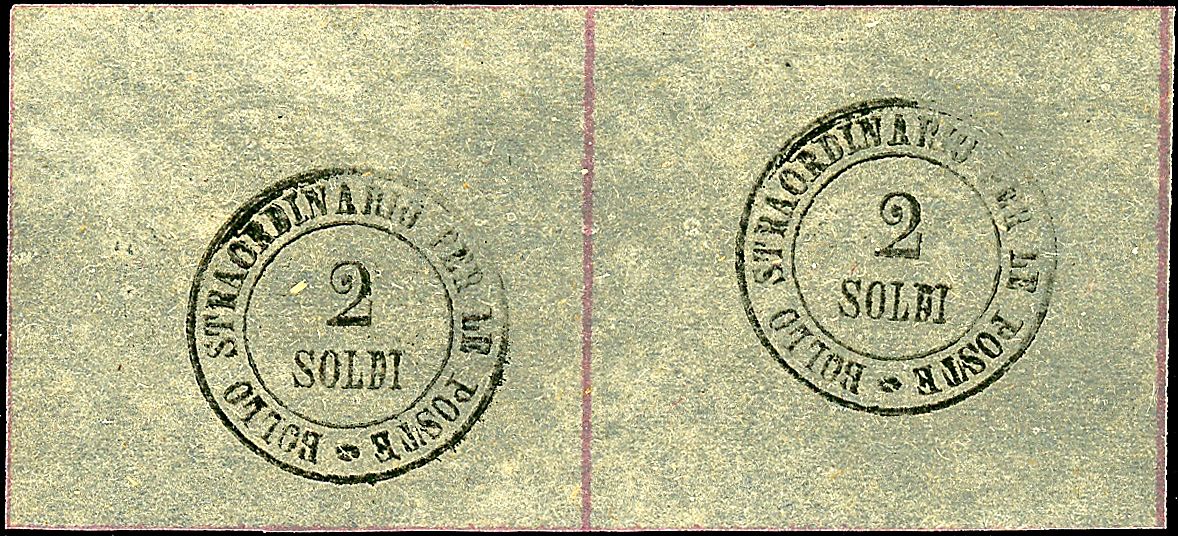 1854 - 2 s. nero (1) in coppia SPL con gomma integra - Sigla Bottacchi (700,00)