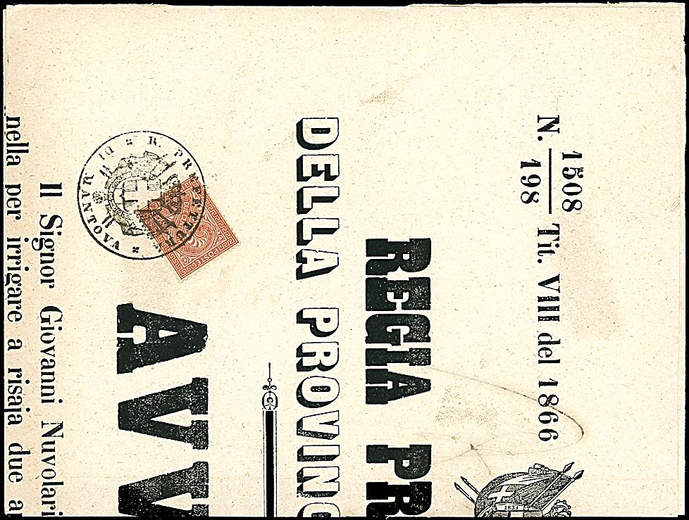 1863 - 2 c. bruno rosso (L15) SPL su manifesto della Regia Prefettura di Mantova - Fotografato sullo Zanaria-Serra
