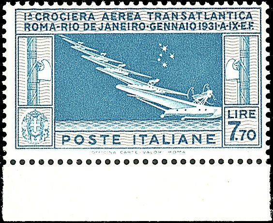 1930 - 7,70 celeste e grigio (25) SPL e con b.f. in basso - Cert. G. Bolaffi (1.300,00)