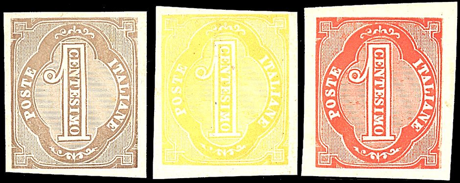 1863 - Grazioli - 1 c. in differenti colori, su cartoncino - Lotto 3 val. SPL