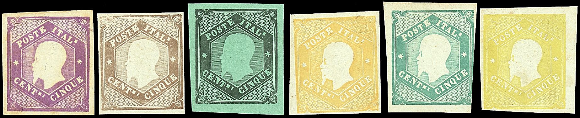 1863 - Grazioli - 5 c. in differenti colori, su cartoncino - Lotto 6 val. SPL