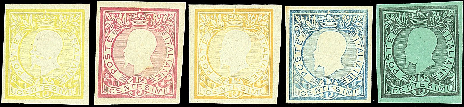1863 - Grazioli - Lotto 5 valori da 15 c. carta spessa in 5 differenti colori - SPL
