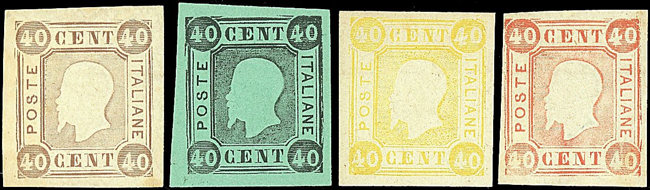 1863 - Grazioli - 40 c. in differenti colori, su carta spessa - Lotto 4 val. SPL