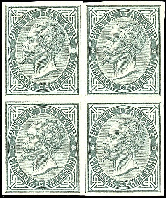 1863 - 5 c. grigio verde (P16) in quartina SPL - Cert. RD (1.680,00)