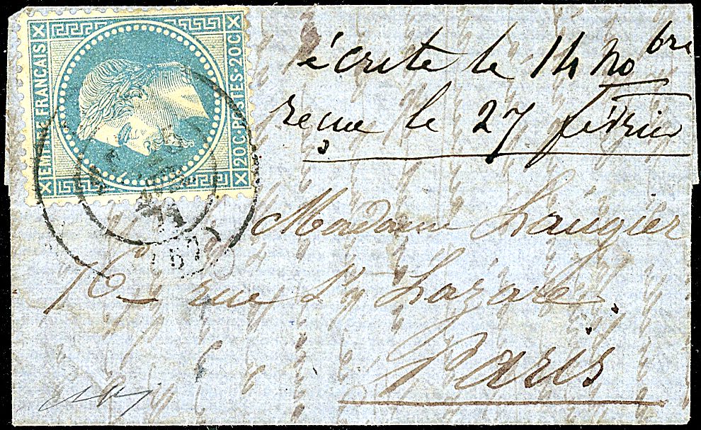 POSTA AEREA - Ballons Montès - 1870 - Tentativo di ingresso a Parigi - Splendido aerogramma da Villers (14/11/70) a Parigi - Non comune - Cert. Bolaffi