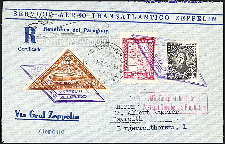 1932 - 3ª Sudamerikafahrt - Busta da Asuncion (15/4/32) a Bayreuth - Bollo di arrivo (Sieger 155)